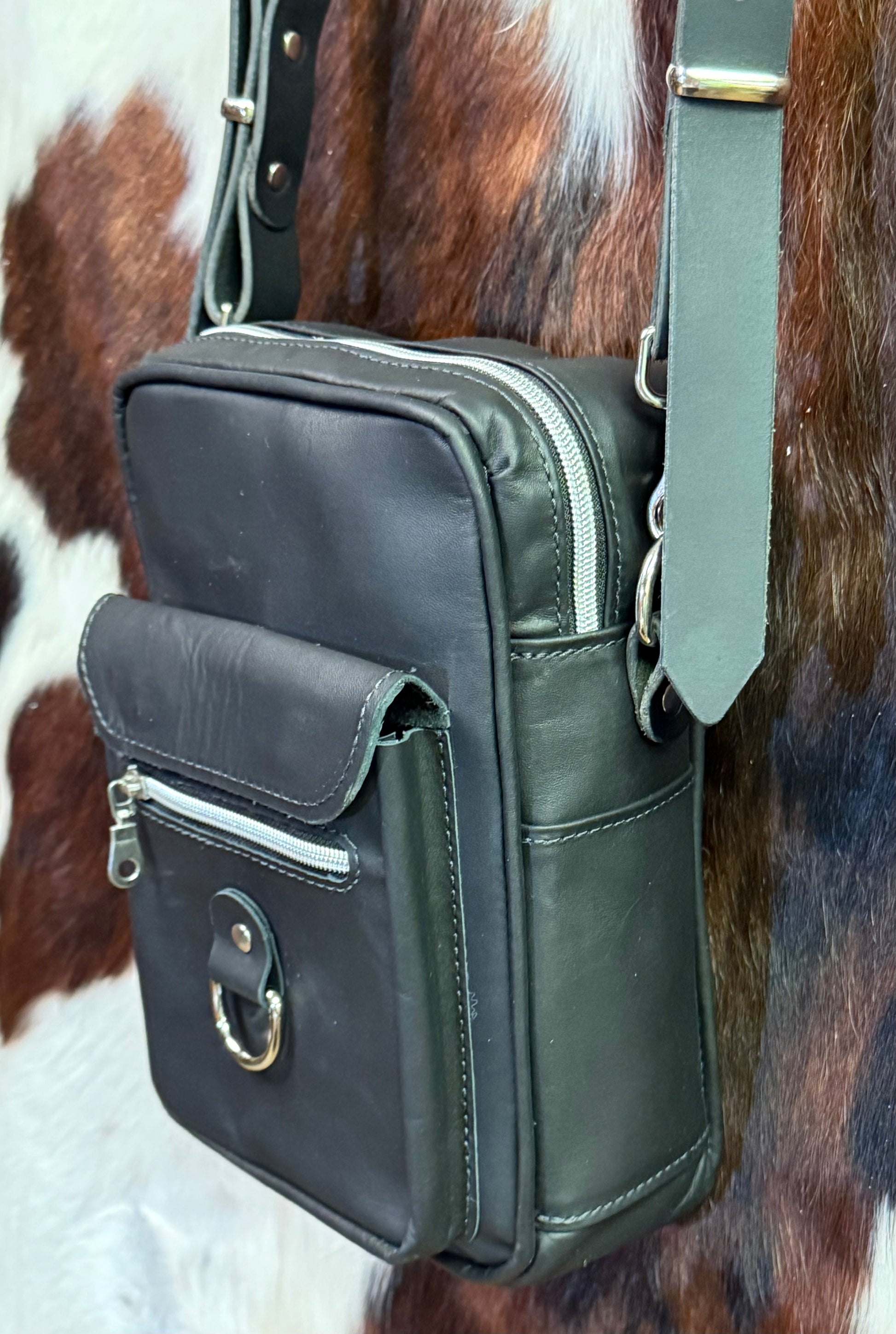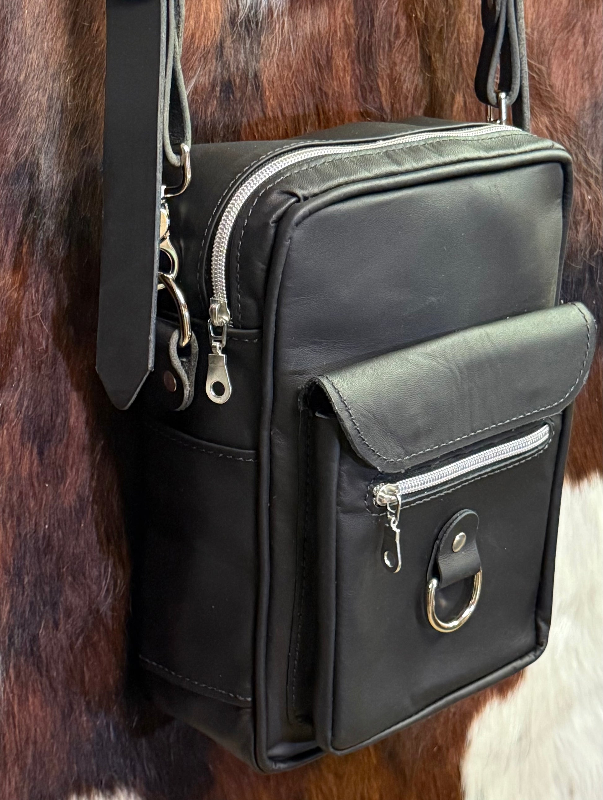 The Cindy bag; I was shown a style of a bag and was challenged to create my own version. This one is in black. This bag features 6 pockets for those that like pockets on a bag. The strap has a full 10 inches of adjustment. The front pocket flap is held with 2 magnetic snaps. As of now we offer these in black and brown. Don’t like the color? Contact us to make it in a color of your choosing.